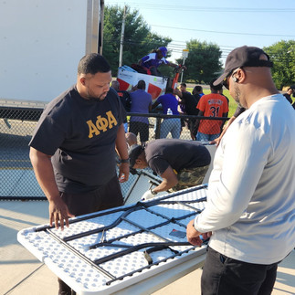 The Meade / North County Back to School Backpack Appreciation Block Party was held at Van Bokkelen Elementary School in Severn, MD. Brothers Bertty, Whaley, Owens, Brailsford, Dove, Boles, Butler-Sims, and Hood helped hand out hundreds of backpacks and school supplies with community members and other organizations from the Divine Nine. Brother Dr. Bedell also made an appearance at this event to support the chapter and members of the school district staff who were among the participants and coordinators for this event. This was the second year the Meade/North County Black to School Backpack and Appreciation Block Party was held and based on attendance, it is safe to say it will return next year.